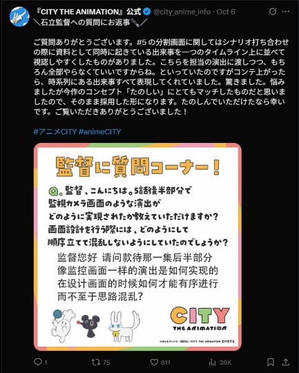 存一下《CITY》官方X发布的石立导演Q&A。