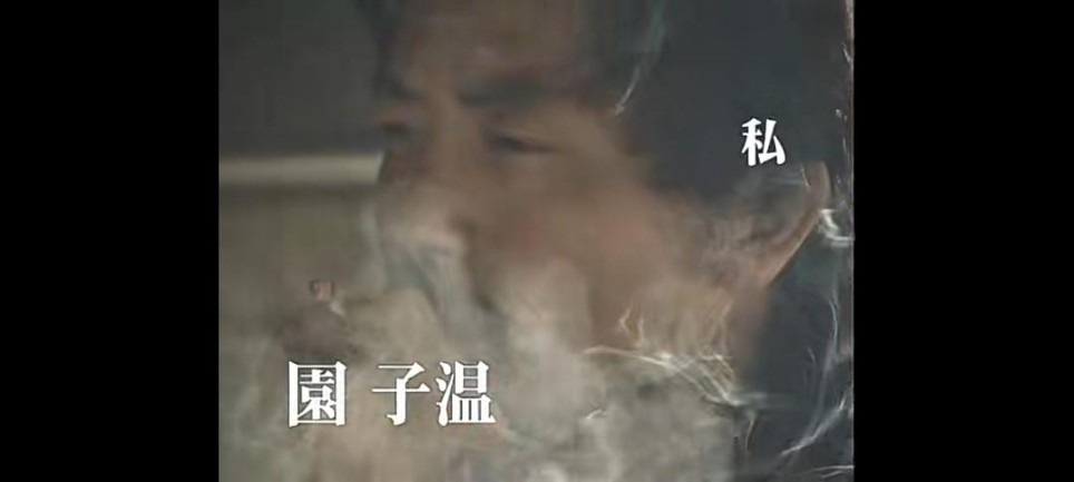 设备是电影创作的工具,象征着电影创作的绝对权力 。电影中的人物似乎在这一刻与创作电影的人相遇。 吉加·维尔托夫曾提出"电影眼"理论,即强调摄影机作为超越人类肉眼的观察工具,能够捕捉人眼无法直接察觉的现实细节与运动。园子温把摄影机和其他设备化作符号,也看作沟通前世今生及电影内外的桥梁,扩展了所谓"电影眼"的观察范围,且是更出于"唯心主义"的。 《现生现身》中的设备与虚构人物都被修饰为鲜活的个体,于是它们充分发挥自身潜能,展示着园子温的电影创作实现自身价值和目标的过程,并在不同的情感节点触发不同的共情。 4.园子温的开始